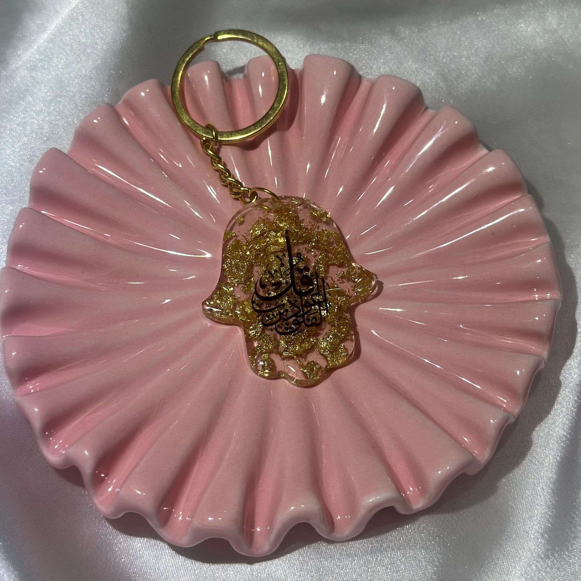 Surat al falak transparent with gold hand keychain