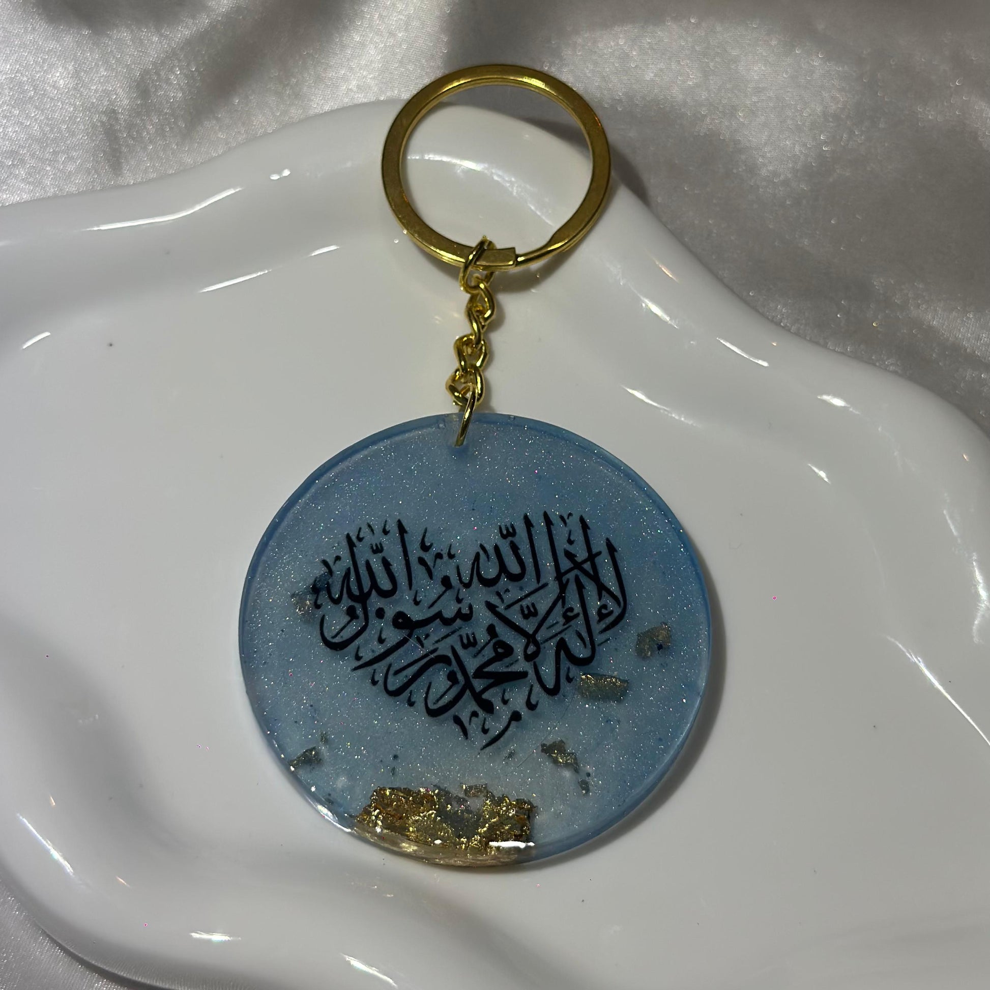 Quraan heart text light blue keychain